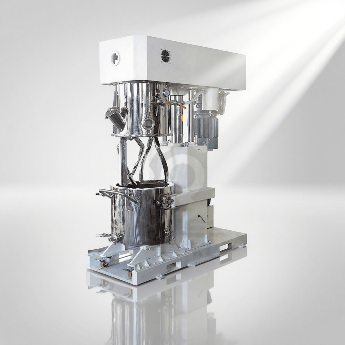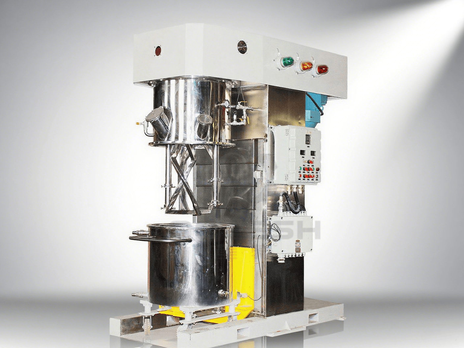 雙行星動力攪拌機雙行星動力混合機是一種新型且對多種混合液體、粉體進行攪拌、溶解、分散、均質(zhì)效率好的攪拌設備。該設備配有高速、低速、活動刮板部件,低速攪拌部件采用行星齒輪傳動,攪 -